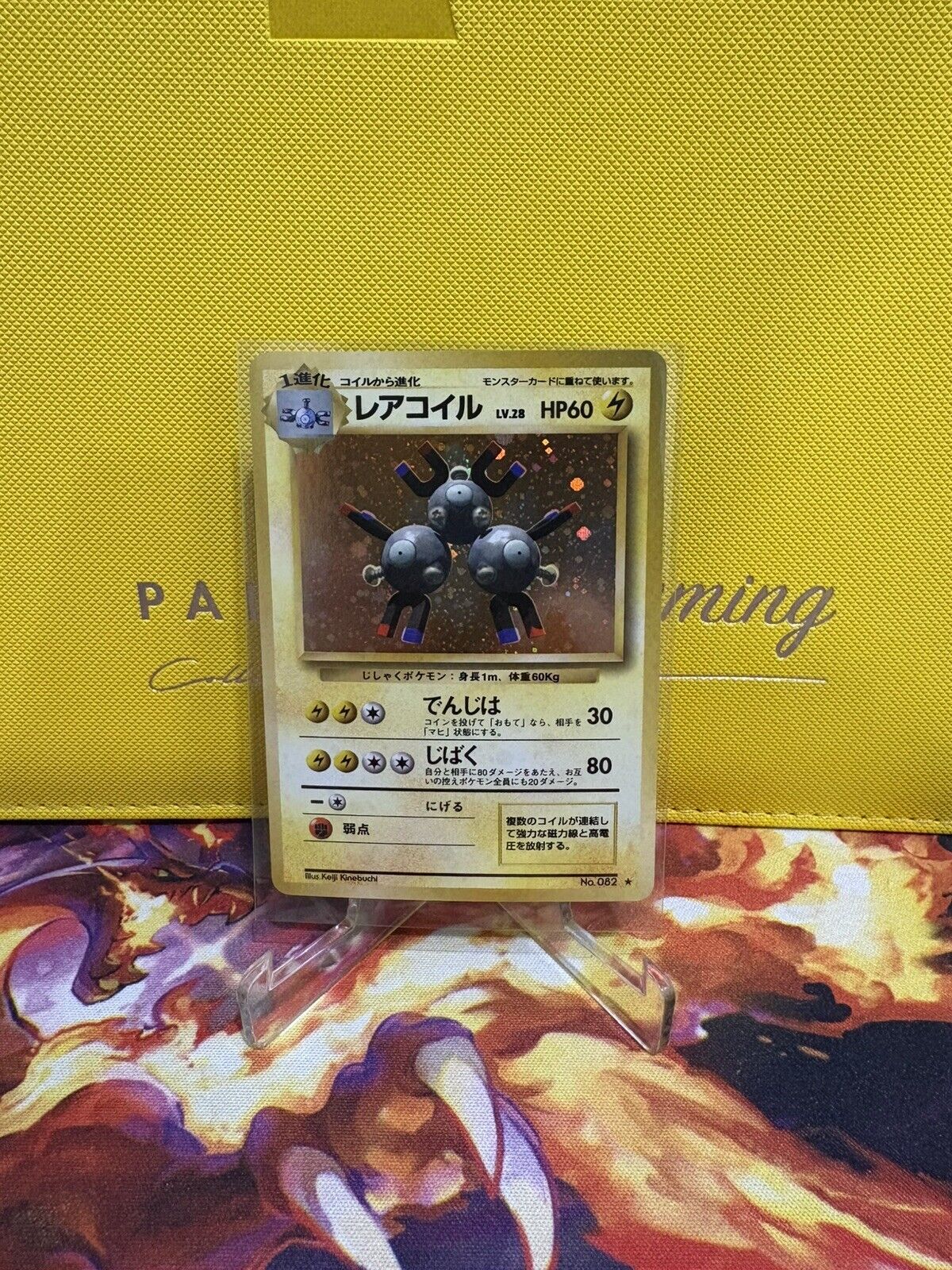 Dive into the nostalgia of the Pokémon TCG with this rare holo Magneton card from the iconic Base Set. A true gem for collectors, this Japanese edition card features the electrifying Stage Pokémon, Magneton, boasting a stunning holo finish that captures the essence of the classic game. Manufactured by Nintendo in 1996, this piece of Pokémon history is a must-have for enthusiasts and collectors alike.