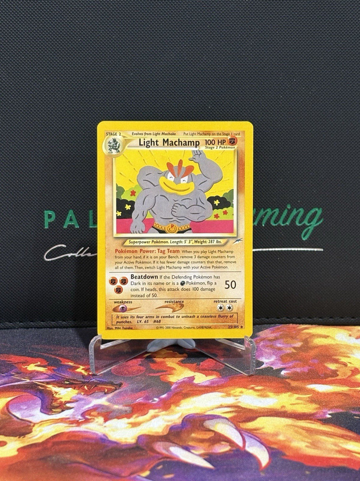Crafted by Nintendo in 2001 and produced in the United States, this English-language card is made from quality card stock material. Light Machamp, number 25/105, is a must-have for collectors and players alike, adding a touch of nostalgia and strength to your Pokémon arsenal.