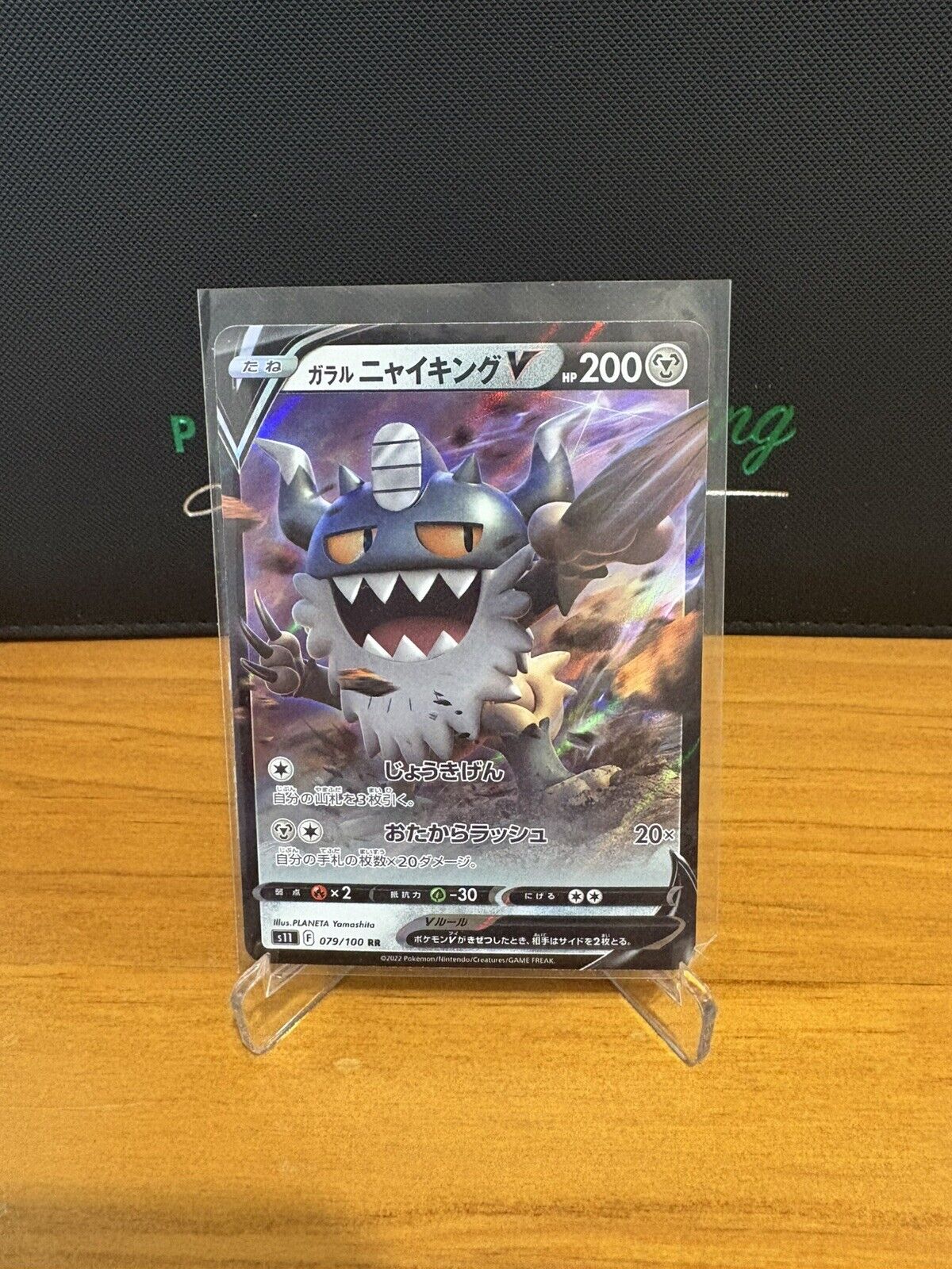 Pokemon Card Galarian Perrserker V RR 079/100 s11 Lost Abyss Japanese is a rare and highly sought-after collectible card from the Pokémon TCG. This standard-sized card features a holographic finish, showcasing the character Galarian Perrserker V in stunning detail. Manufactured by Nintendo in 2022, this Japanese-language card is part of the Lost Abyss set, making it a valuable addition to any Pokémon card collection for fans aged 6 and above.