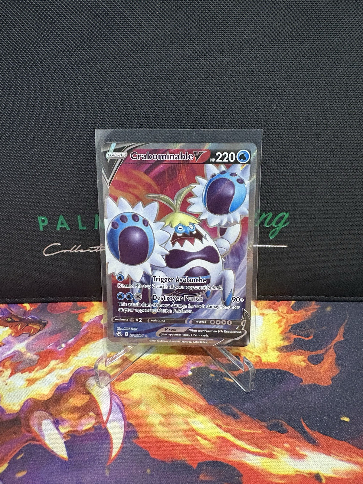 This card not only represents the might of Crabominable V with its 220 HP, but it's also a must-have for players and collectors alike looking to enhance their gameplay or showcase a piece of the Pokémon universe. Whether for competitive play or display, this Fusion Strike offering is a worthy contender for a place of pride in your collection.