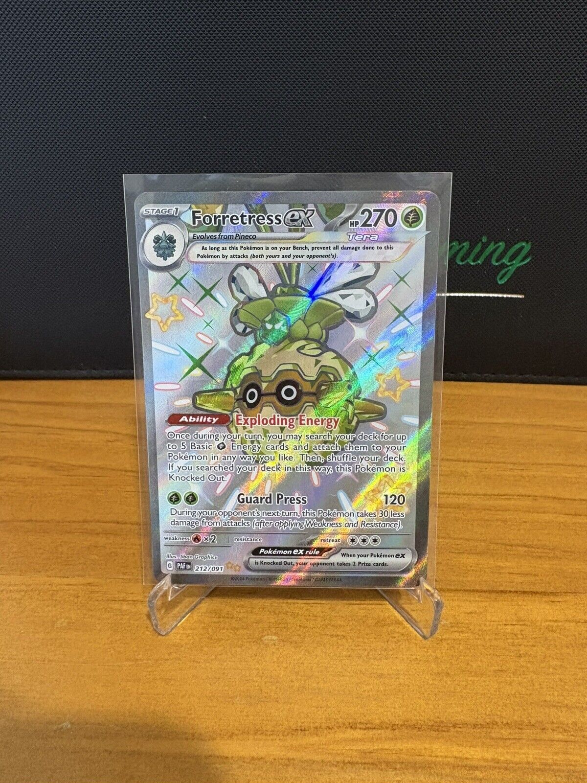 Pokémon TCG Forretress EX Scarlet & Violet - Paldea Evolved 230/193 Holo card is a rare find for collectors and players alike. This Ultra Rare card features the Grass attribute and is part of the sought-after Scarlet & Violet set. With its striking holographic finish, this card is sure to stand out in any collection. Perfect for fans of the Pokémon Trading Card Game, this Forretress EX card is a must-have for any enthusiast looking to add a valuable and unique piece to their deck.