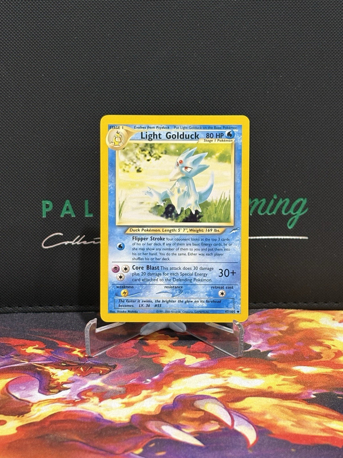 Enhance your Pokémon TCG collection with the vintage Light Golduck card from the iconic Neo Destiny set. Dating back to the year 2000, this uncommon card features the exquisite artwork of Atsuko Nishida, capturing the essence of the beloved Water-type Pokémon. With card number 47/105, it's a must-have for enthusiasts seeking to reminisce or expand their historical lineup.
