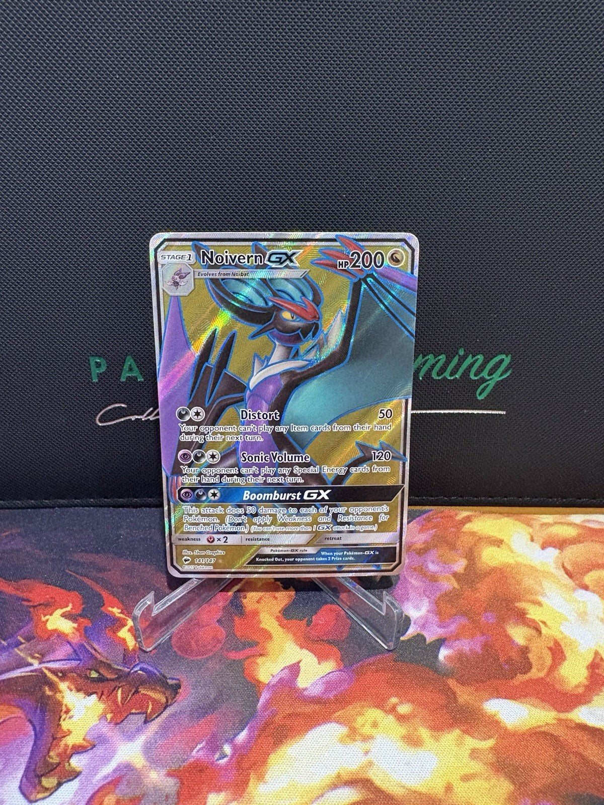 Elevate your Pokémon TCG collection with the Noivern GX card from the Burning Shadows set, featuring a stunning full art design with a holographic finish. This card showcases the enigmatic Dragon-type Pokémon, Noivern, in a dynamic pose, encapsulated in a luxurious holo illustration that catches the eye with every turn.