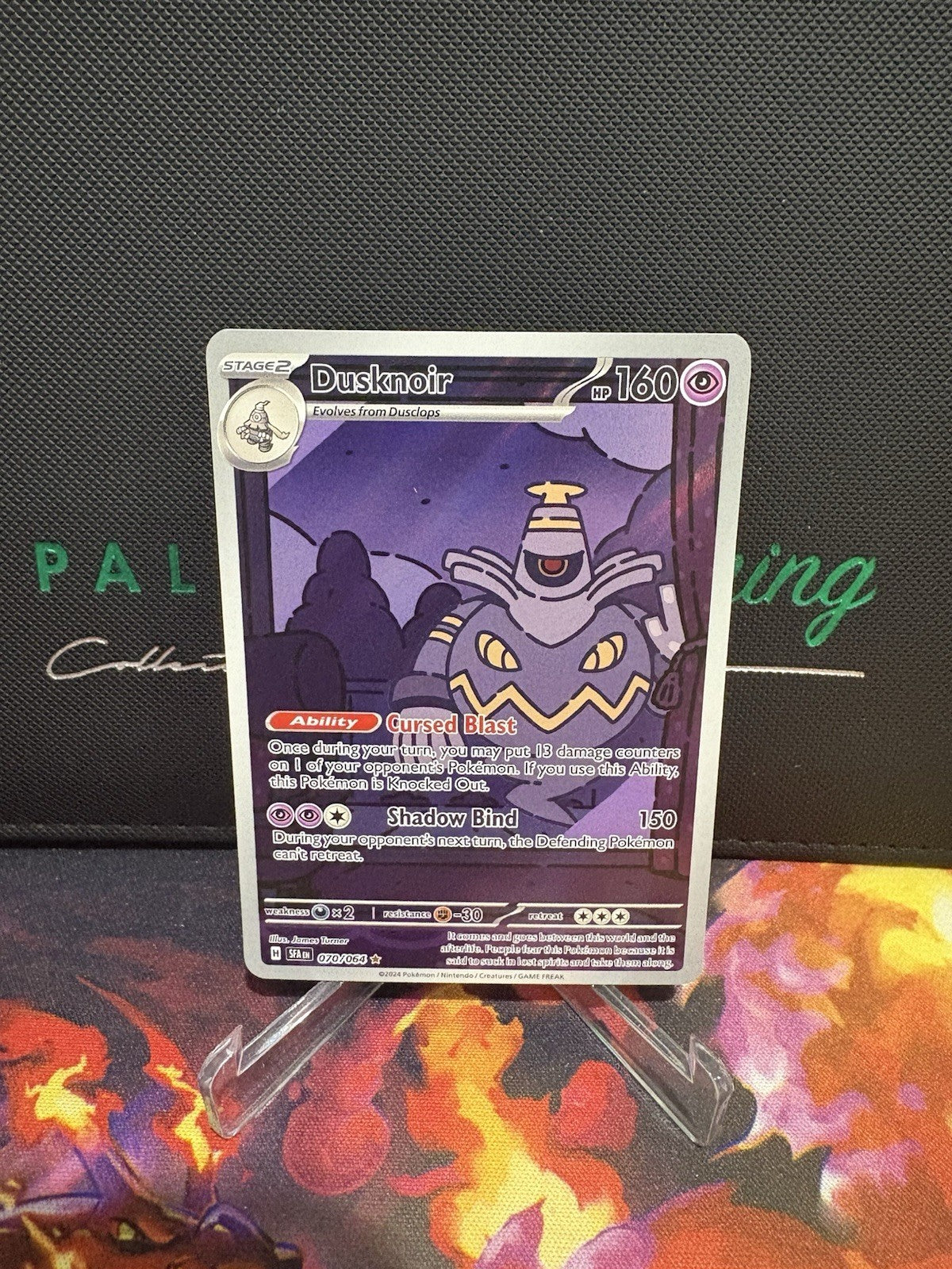 Dusknoir 070/064 emerges from the Shrouded Fable set, revealing its Illustration Rare status that will captivate collectors and players alike. This Pokémon TCG card features the enigmatic character Dusknoir, rendered in stunning detail that showcases the artistry of the game.