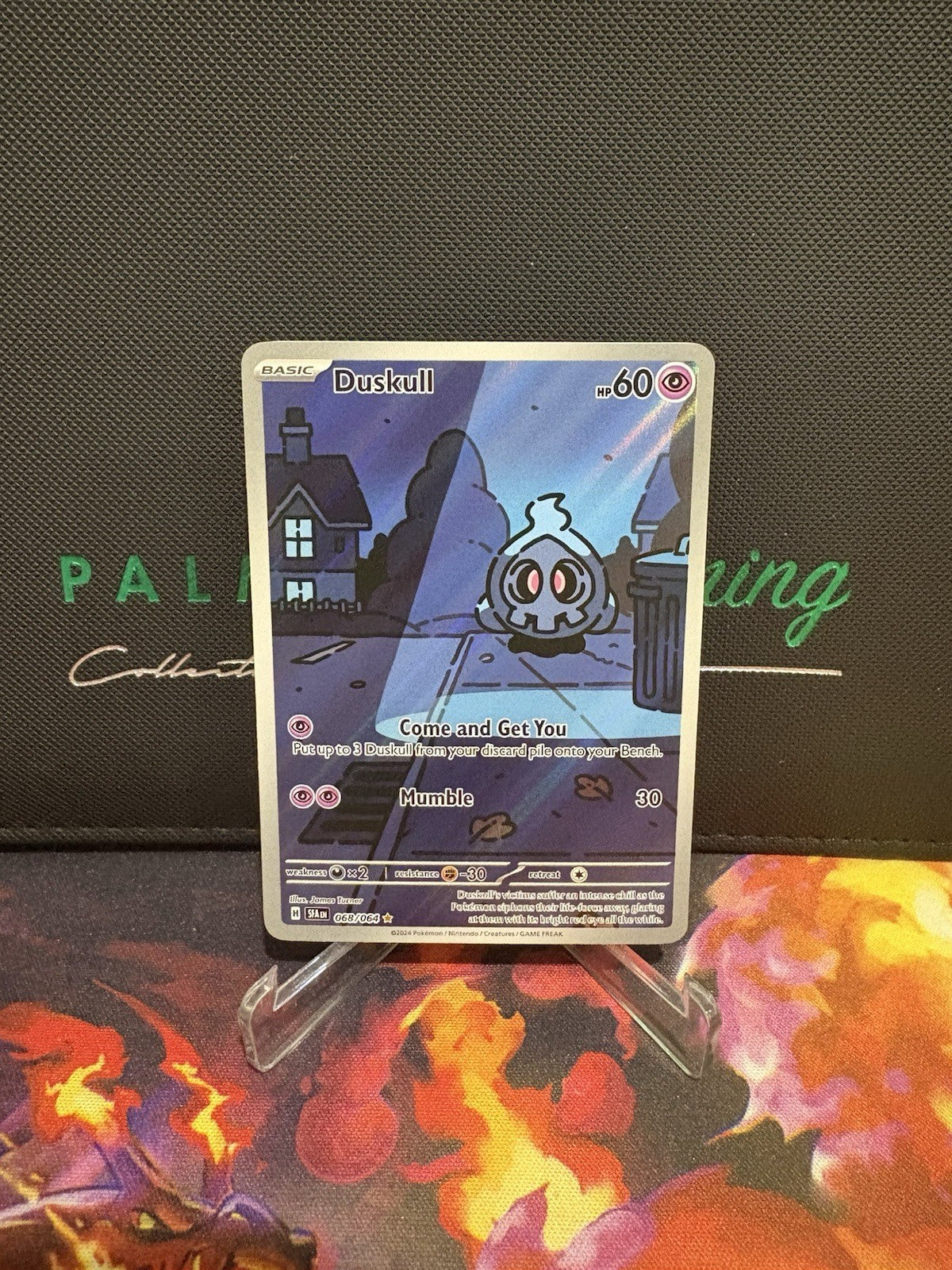 Step into the world of Pokémon TCG with this striking Duskull card from the Scarlet & Violet: Shrouded Fable set. Featuring a captivating full art design, this card showcases the eerie charm of the Ghost-type character Duskull, rendered in vivid detail that stands out with its holo finish.