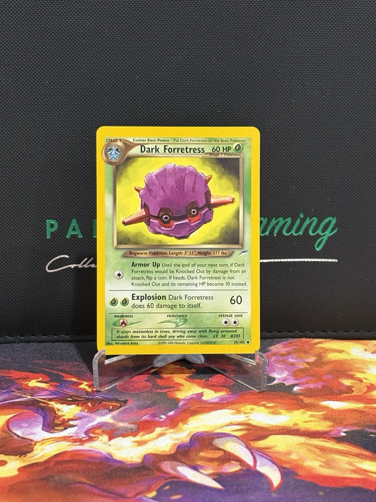 Enhance your Pokémon TCG collection with the Dark Forretress card from the iconic Neo Destiny set. This vintage Wizards of the Coast release from the year 2000 features the formidable Forretress in its darker form, rendered in the distinctive style of illustrator Mitsuhiro Arita. With card number 35/105, this piece is a must-have for enthusiasts seeking to complete their Neo Destiny compilation or collectors of timeless Pokémon memorabilia.