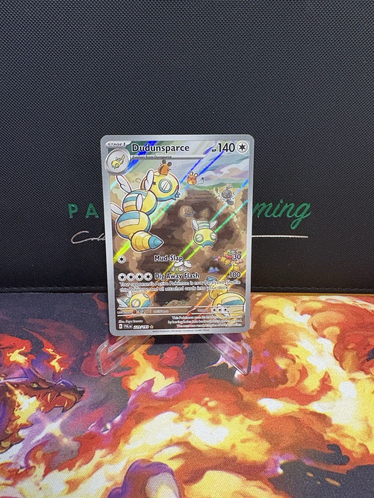 As part of a highly sought-after set, this card is a must-have for anyone looking to complete their collection or to add a touch of Paldea's evolution to their battles. Whether for competitive play or simply as a display piece, the Dudunsparce card is a noteworthy addition to any Pokémon TCG ensemble.