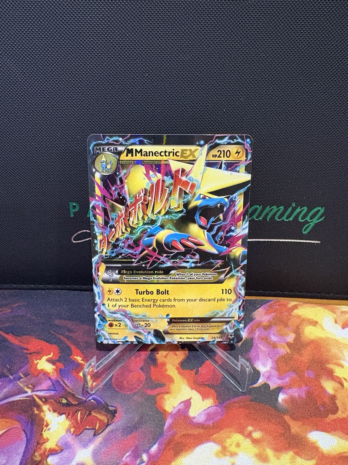 Elevate your Pokémon TCG collection with the Mega-Manetric-EX from the Phantom Forces set, card number 24/119. Boasting a striking Holo finish, this Holo Rare ex card features the electrifying Lightning-type Pokémon in its Mega Evolution form, illustrated with the distinctive style of 5ban Graphics.